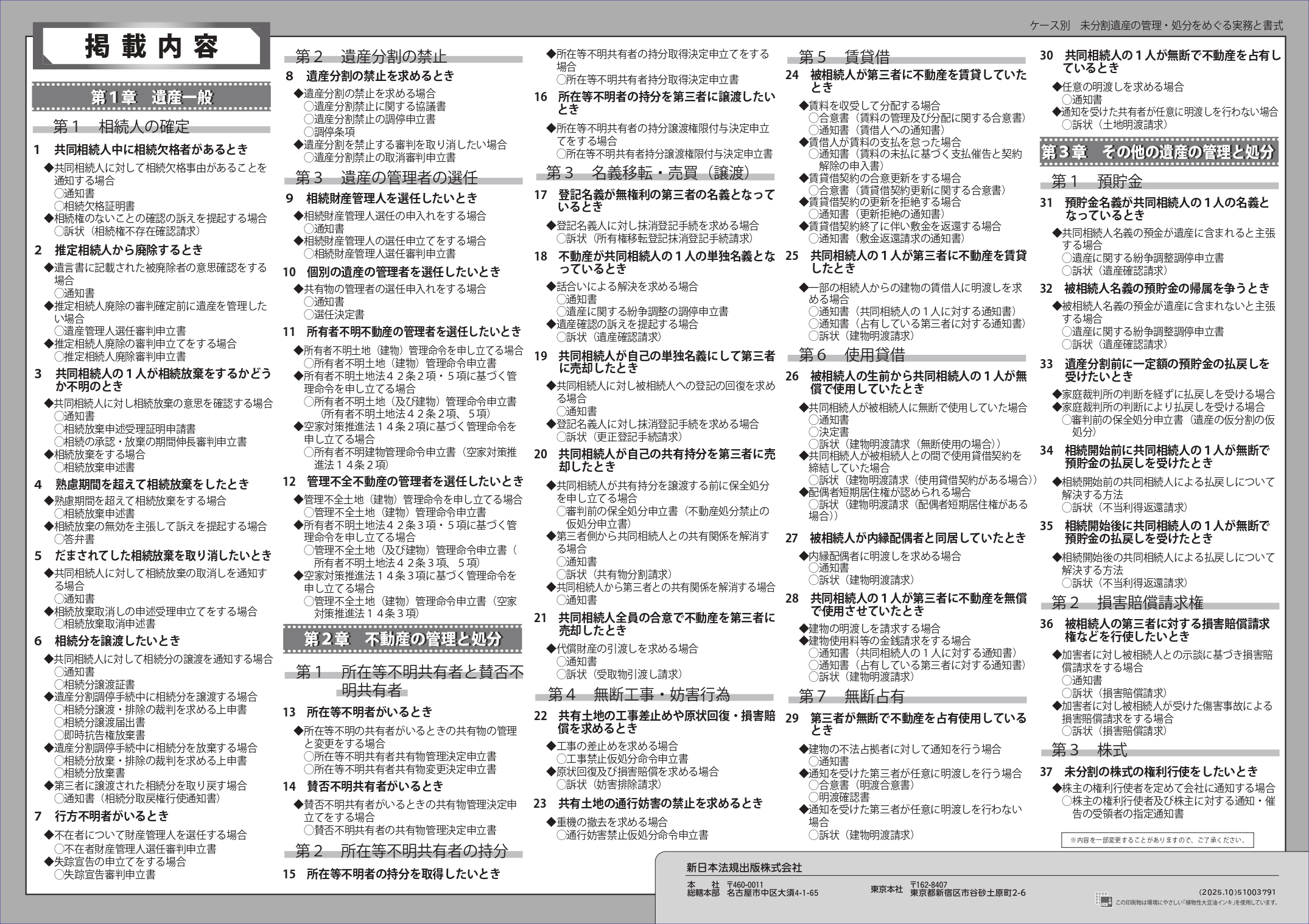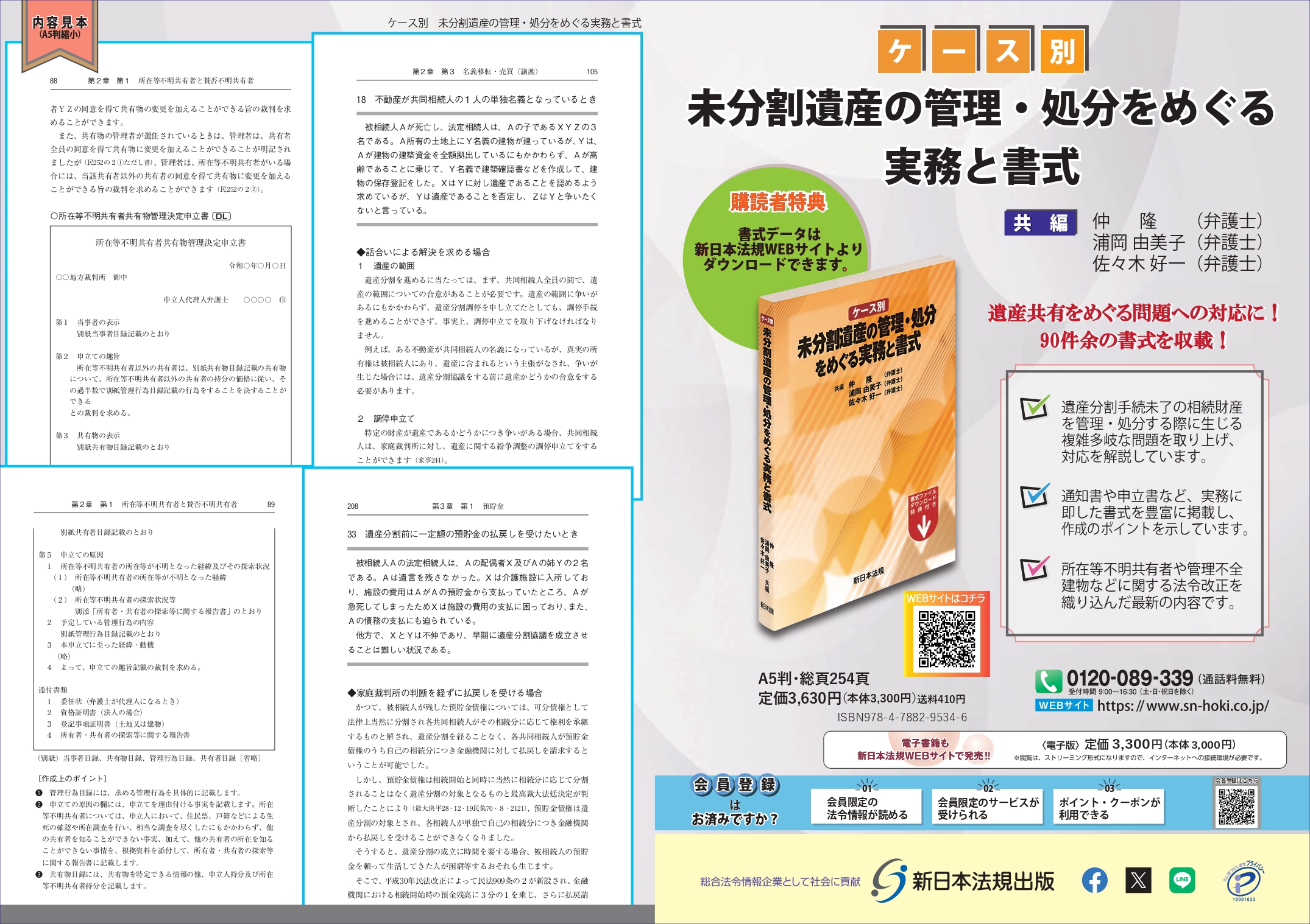ケース別 未分割遺産の管理・処分をめぐる実務と書式 お勧め商品 その他 出版社 新日本法規出版 ■著者:共編/仲隆(弁護士)、浦岡由美子(弁護士)、佐々木好一(弁護士) ■発刊日:2025年10月28日 ■ISBN:978-4-7882-9534-6 ■書籍紹介 遺産共有をめぐる問題への対応に!90件余の書式を収載! ◆遺産分割手続未了の相続財産を管理・処分する際に生じる複雑多岐な問題を取り上げ、対応を解説しています。 ◆通知書や申立書など、実務に即した書式を豊富に掲載し、作成のポイントを示しています。 ◆所在等不明共有者や管理不全建物などに関する法令改正を織り込んだ最新の内容です。 在庫状態 : 注文可能 ¥3,630(税込) 数量