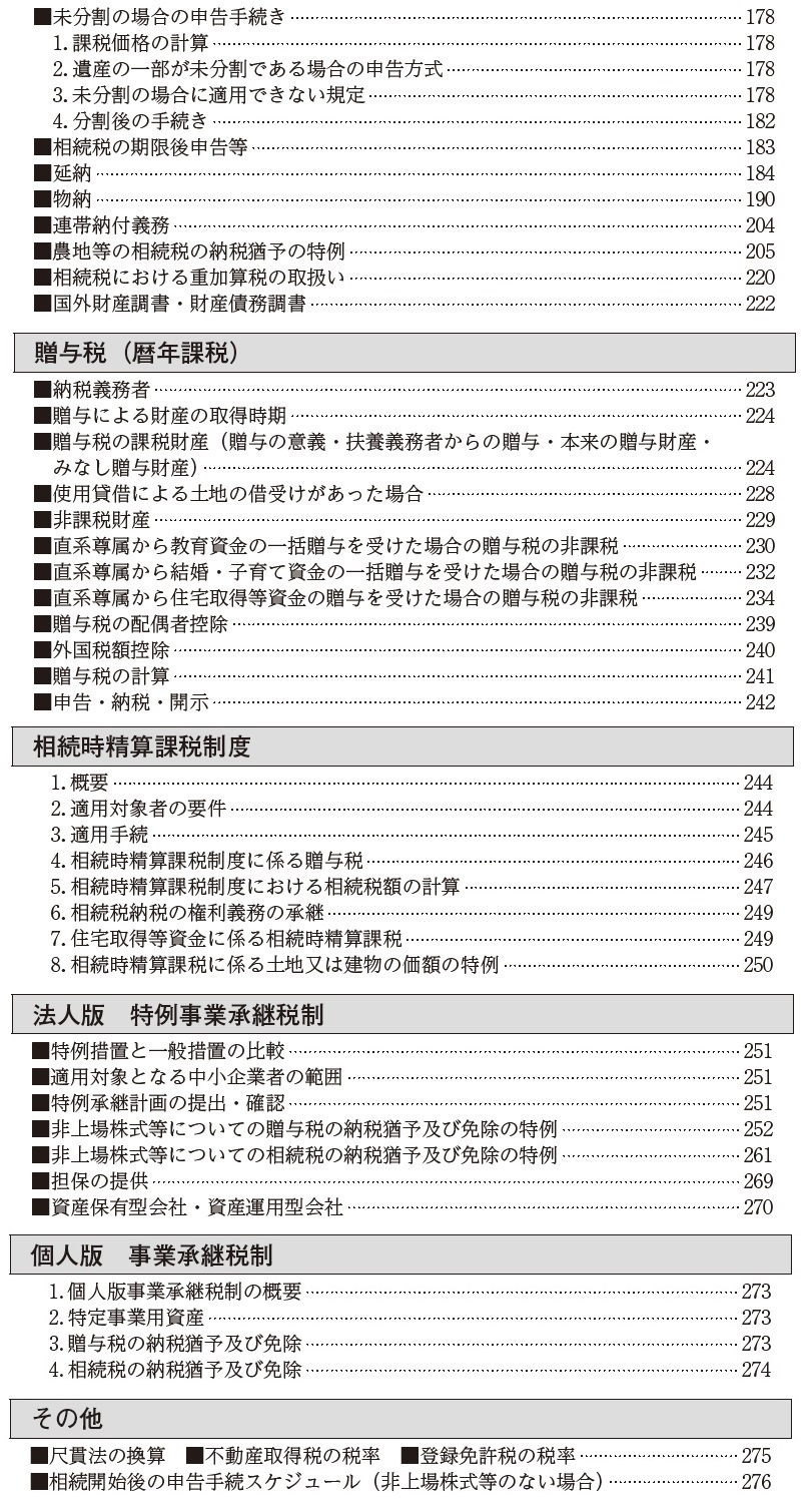 〇民法の基礎知識から始まり、財産評価の実務、相続時精算課税制度や事業承継税制はもちろん、申告スケジュールや必要な収集資料など、相続税・贈与税実務を網羅しています。